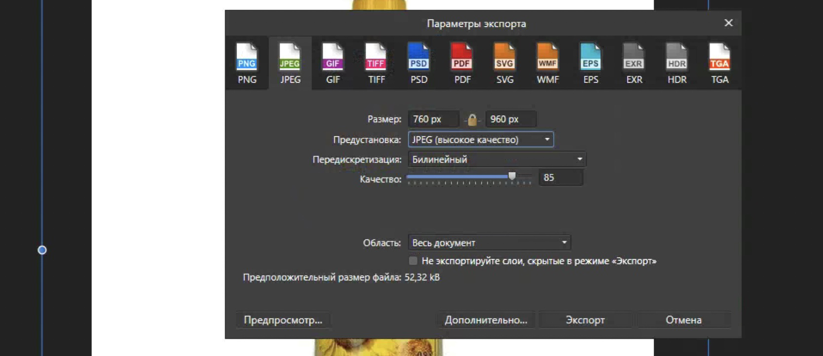 Используйте предпросмотр, чтобы сравнить качество и вес